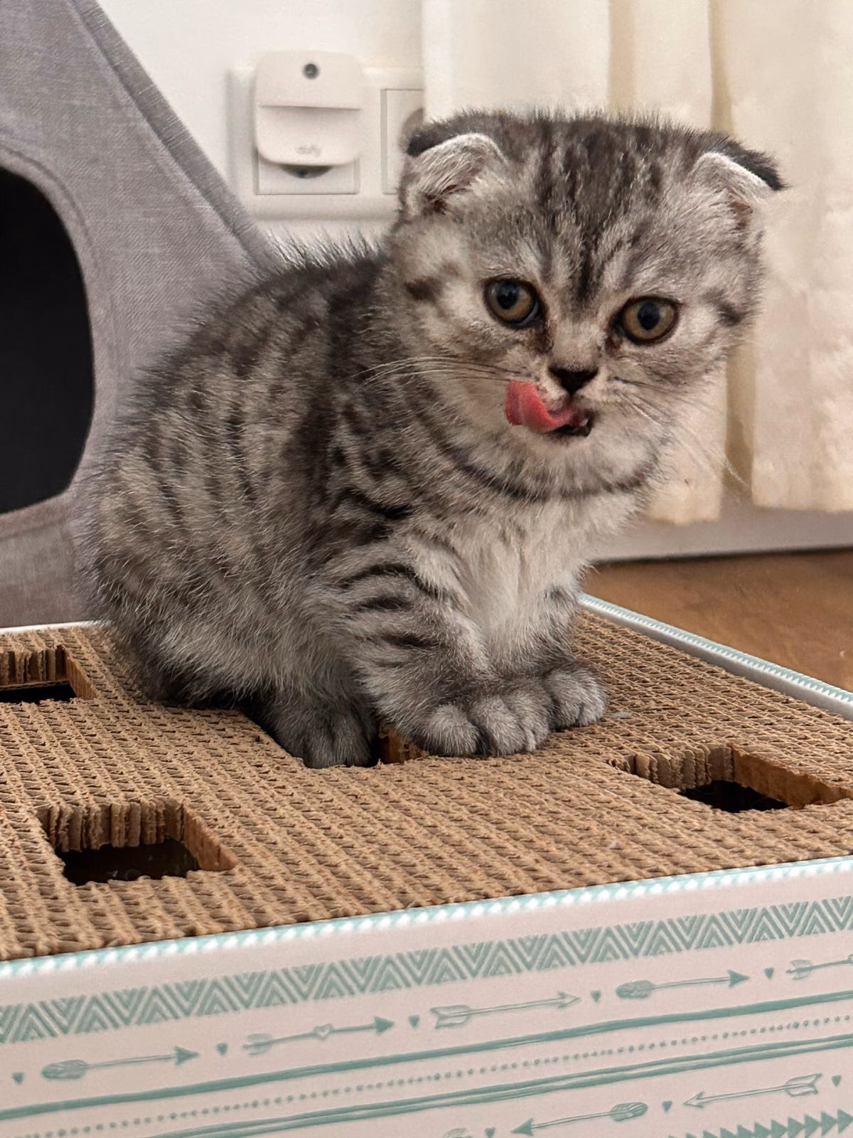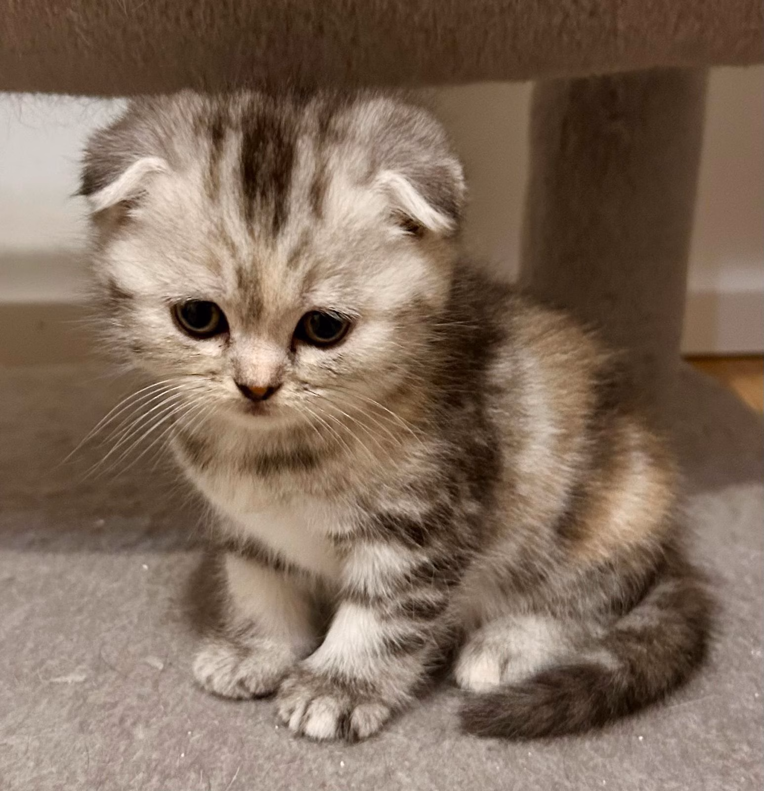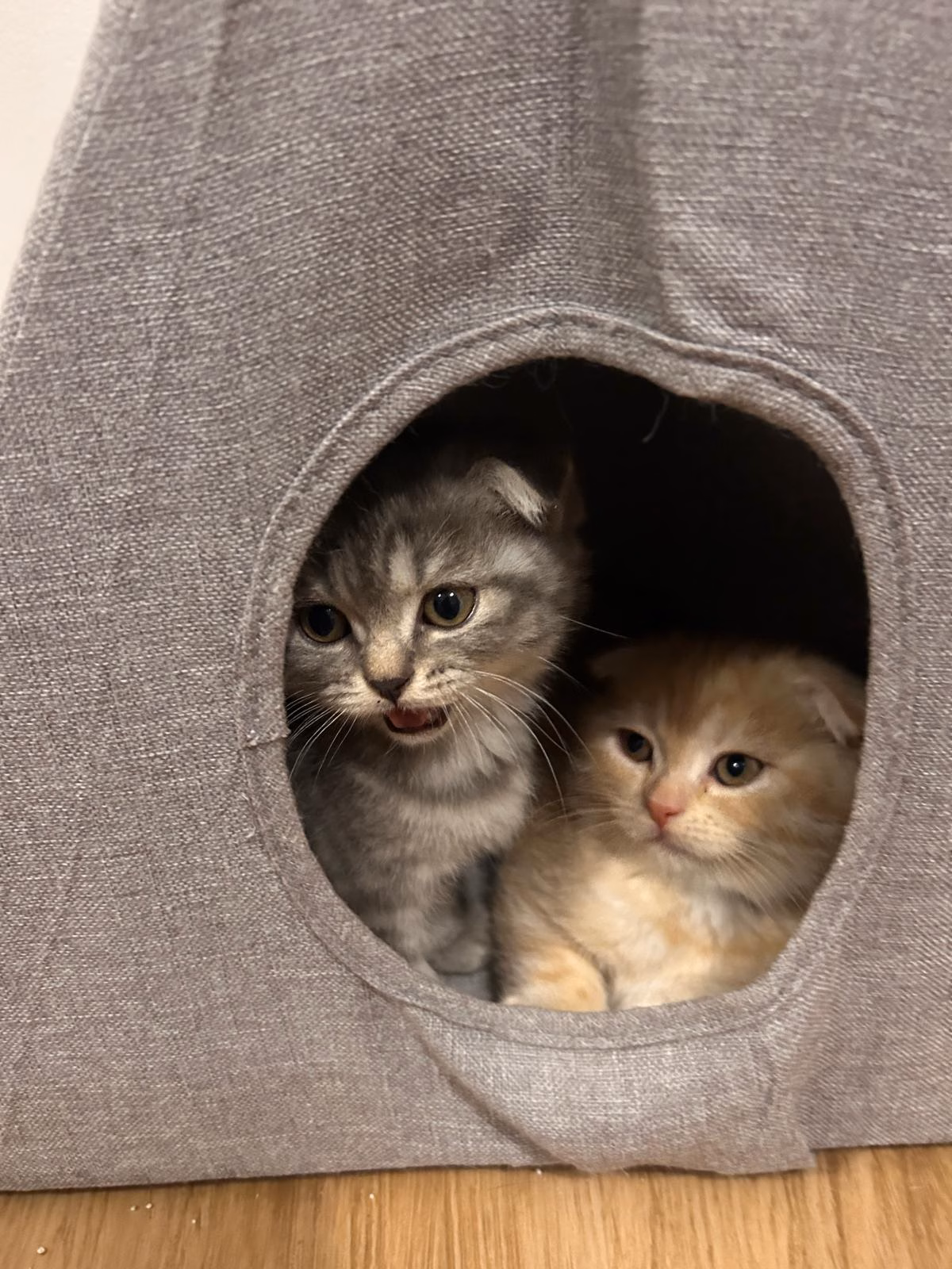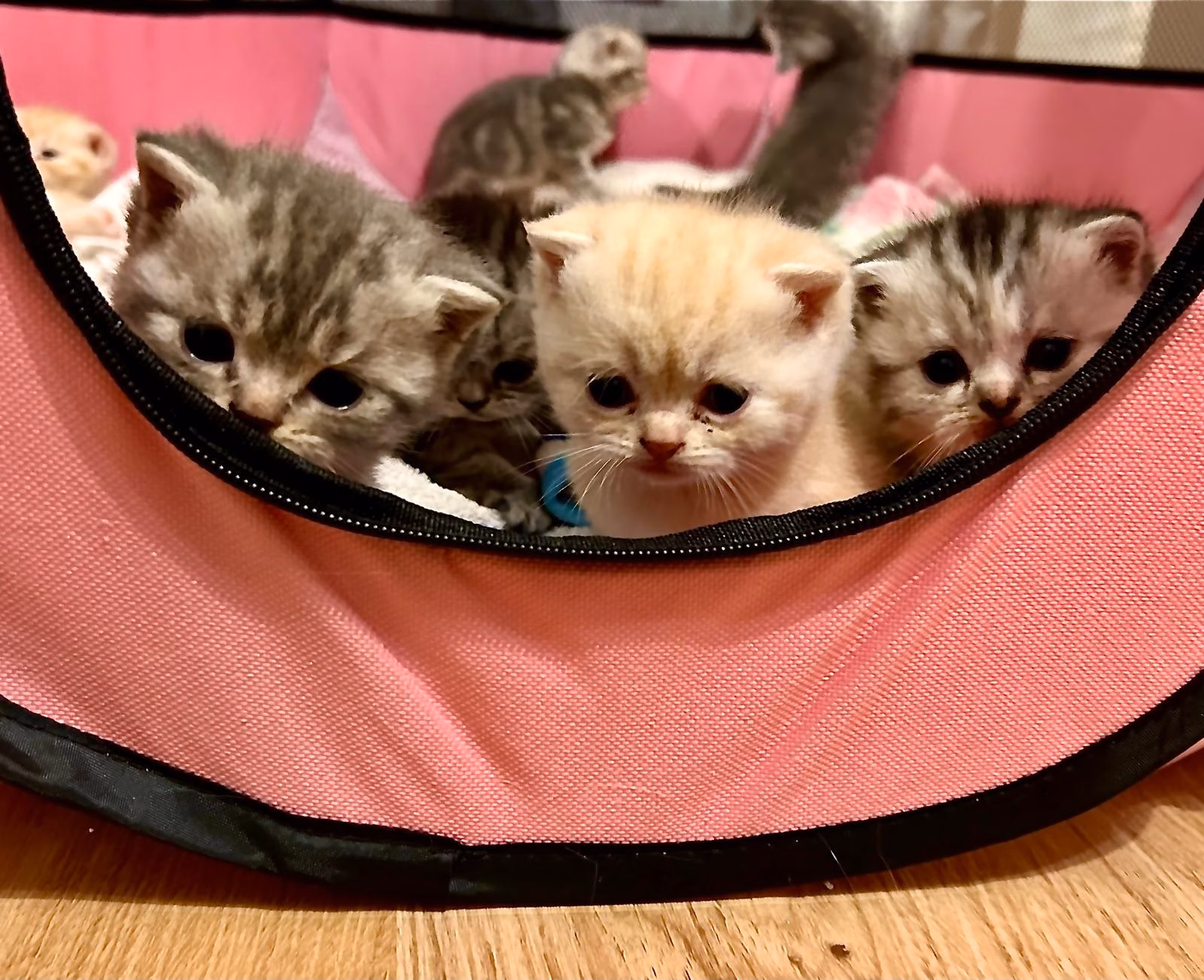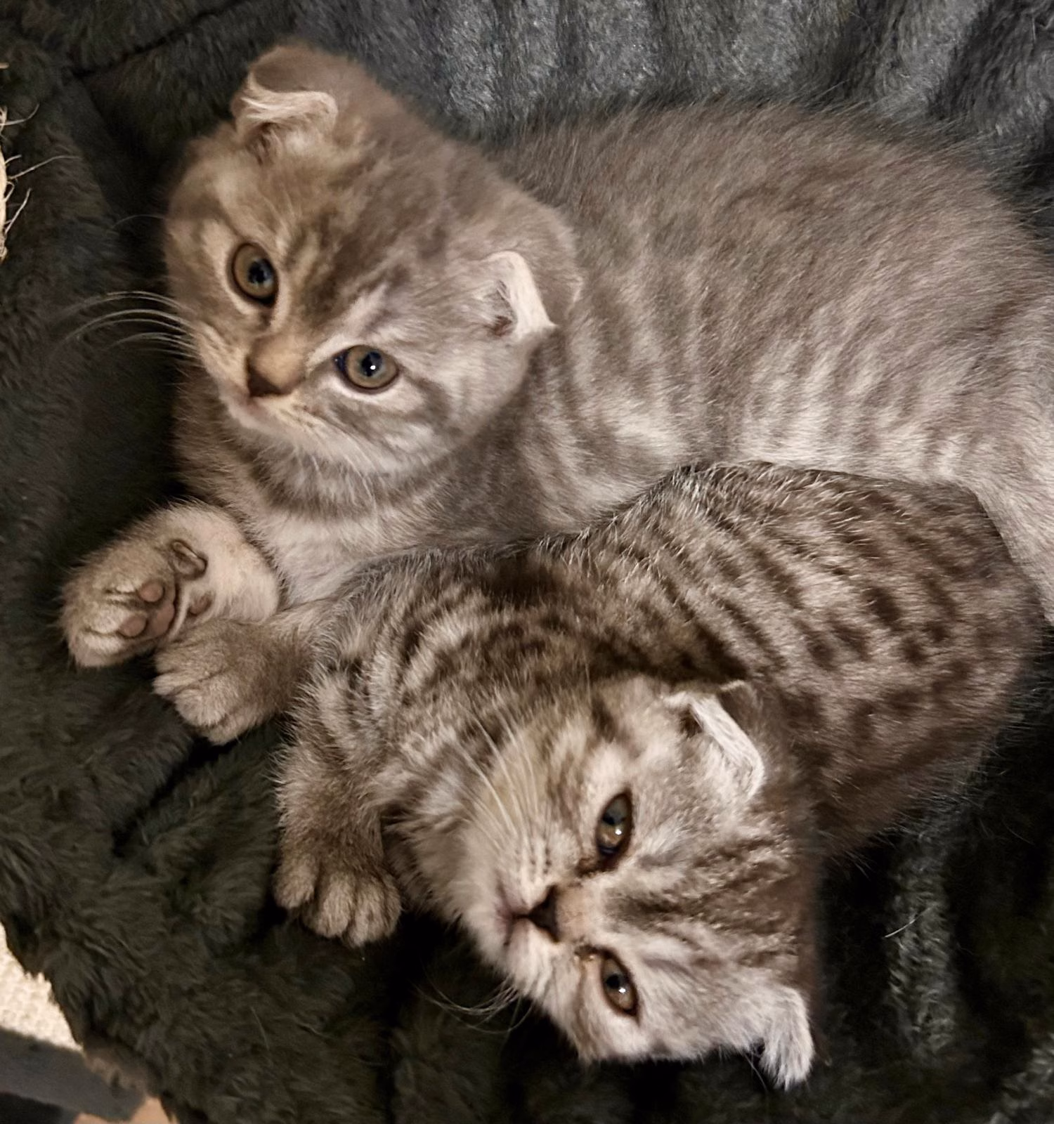 Alle Kitten haben Faltohren, was typisch für den Scottish-Fold-Anteil ist.