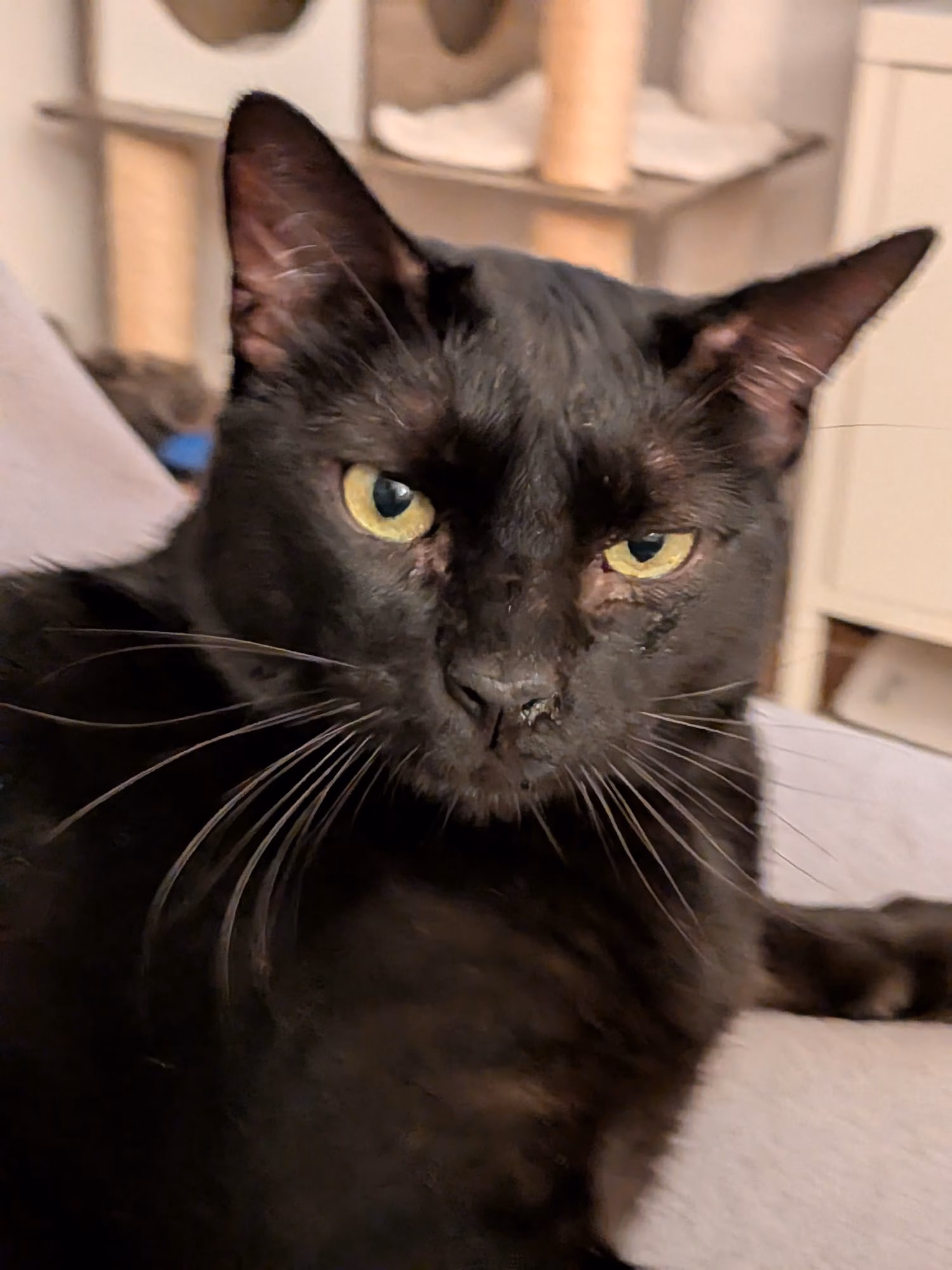 ManMan, geboren im Jahr 2017 in Santa Pola (Spanien), ist ein gutherziger, ruhiger und sozialer Kater mit wunderschön glänzendem schwarzen Fell. Mit seinen rund 8 Jahren ist er im besten Alter – ausgeglichen, verschmust und voller Liebe. er ist ein sehr stattlicher großer Kater mit ein paar Pfunden zuviel.