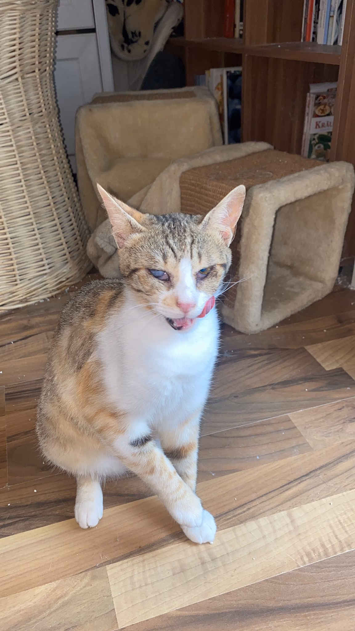 Ihr zweites Auge neigt gelegentlich zum Tränen, was mit Augentropfen gut behandelbar ist.