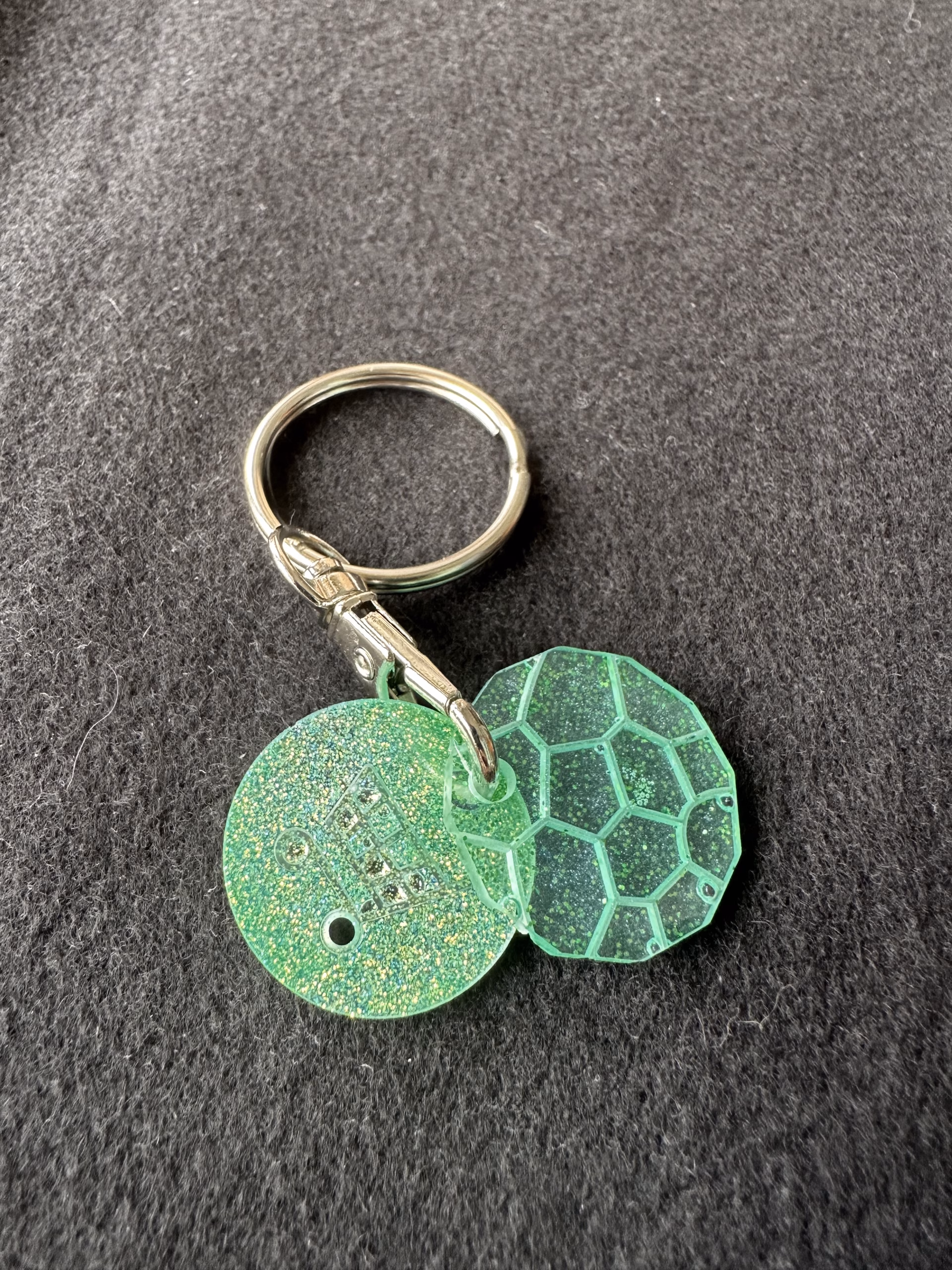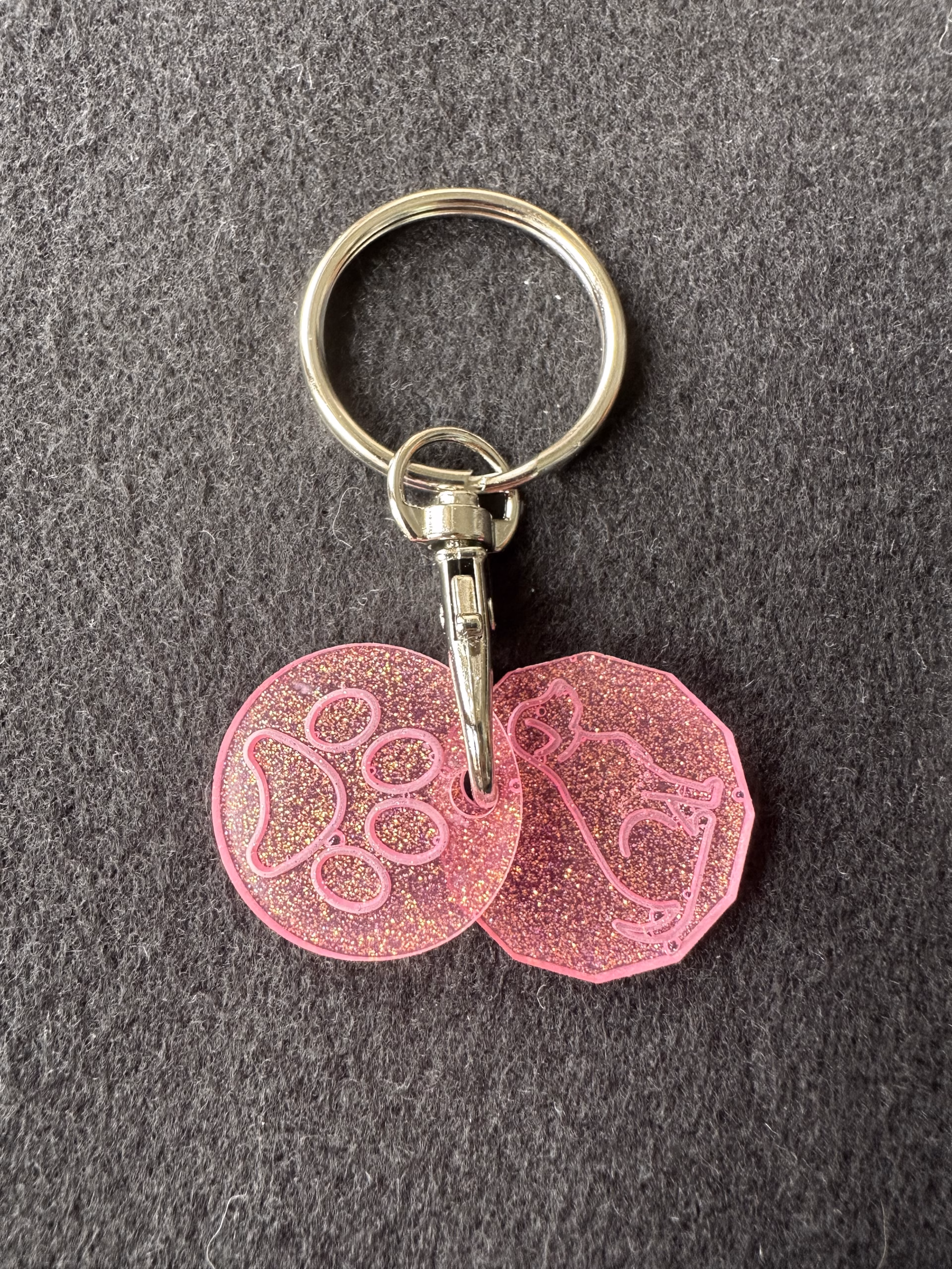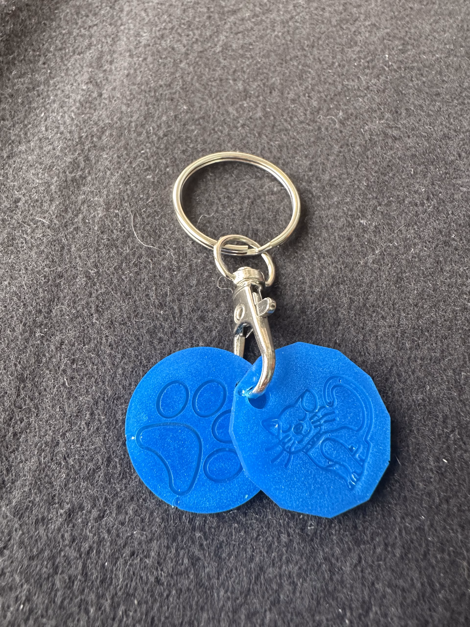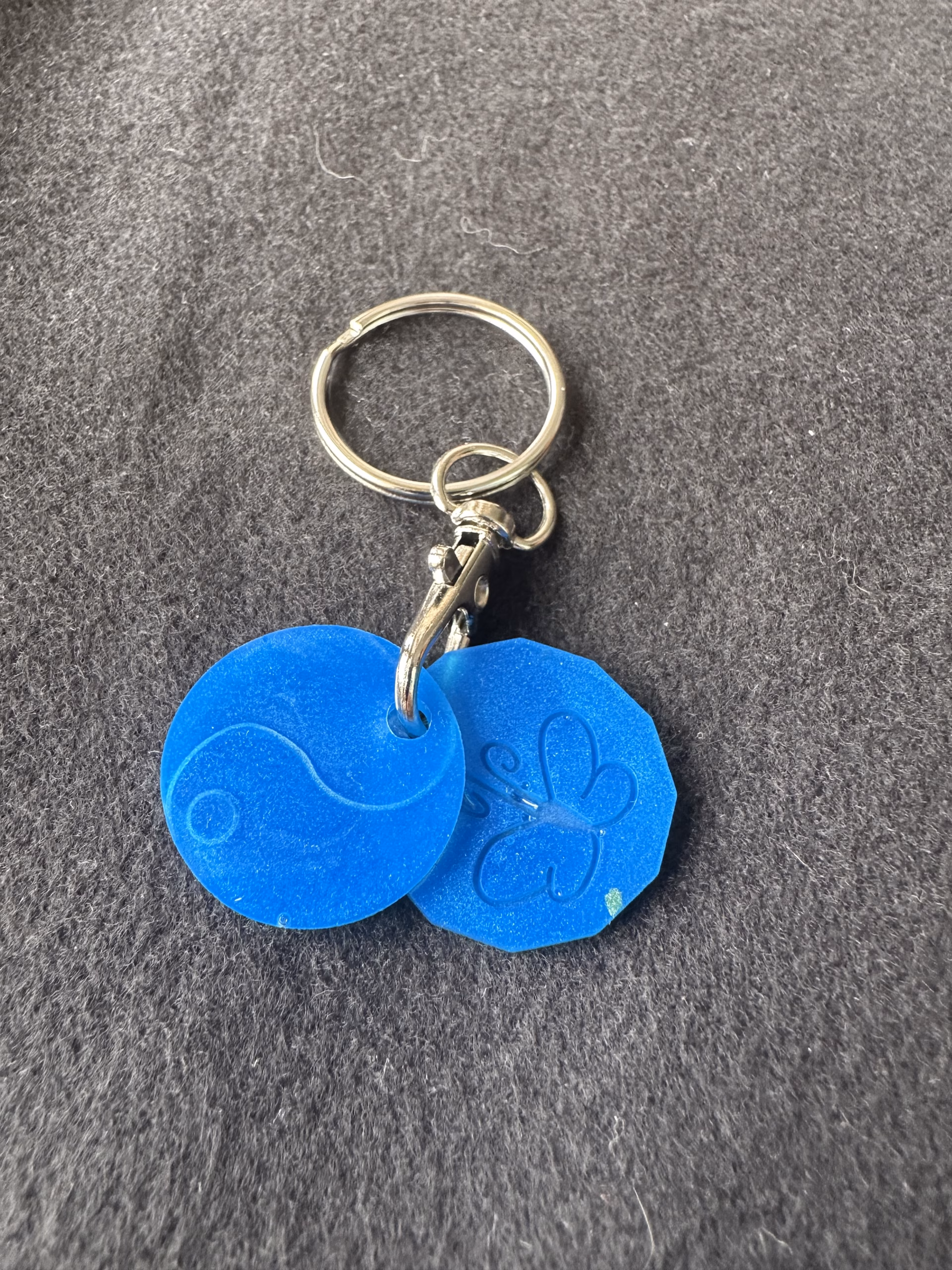 2er-Set handgemachter Einkaufswagenchips aus Epoxidharz – mit bunten Farben & süßen Motiven. Jeder Kauf hilft dem Tierschutz! 🐾💚